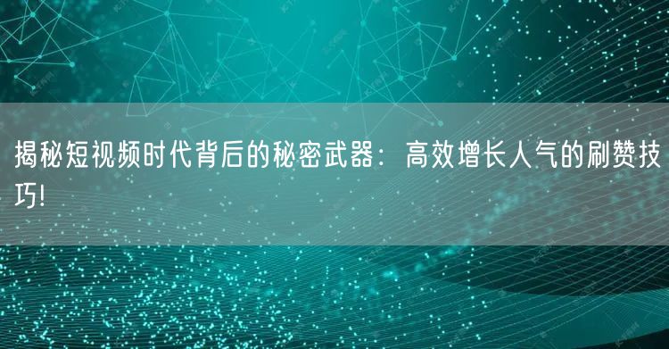 在短视频风靡的今天,如何快速提升作品人气成为许多创作者关注的焦点。刷赞作为一种高效的互动手段,背后隐藏着许多不为人知的技巧与策略。本文将为你揭秘短视频时代背后的秘密武器,助你轻松掌握高效增长人气的刷赞技巧!